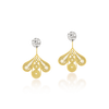 19,2k yellow gold earrings set with brilliant-cut diamonds. Decorated with handmade filigree (scales and spirals).