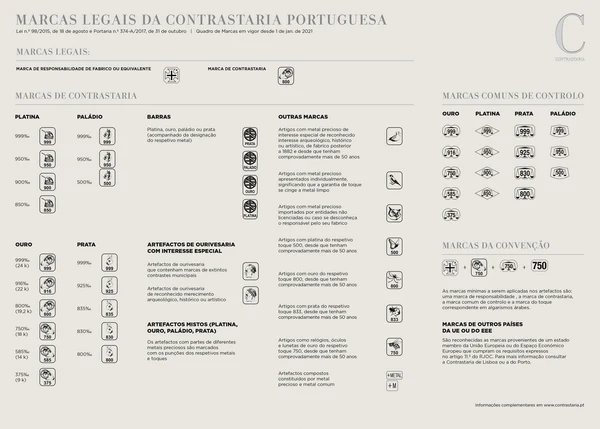 Todas as nossas peças são marcadas pela Contrastaria Portuguesa ou já vêm marcadas pela origem por uma marca da Convenção de Viena.